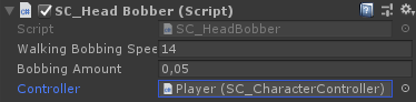 }- Voeg het SC_HeadBobber-script toe aan de hoofdcamera