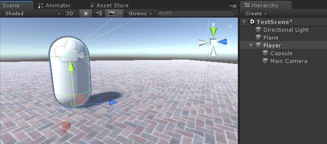 - Maak een nieuwe capsule (Spelobject -> 3D-object -> Capsule) en verplaats deze binnen het "Player"-object