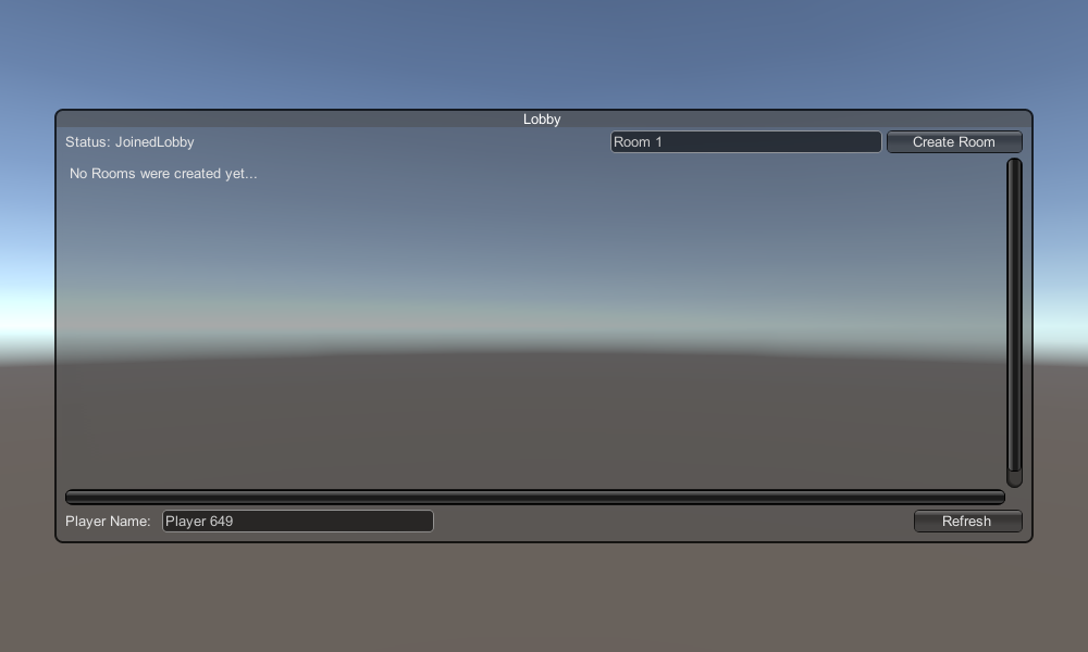 - Maak een nieuwe scène en noem deze "Playground" (of als je een andere naam wilt behouden, zorg er dan voor dat je de naam wijzigt in deze regel PhotonNetwork.LoadLevel("Playground"); in de PUN2_GameLobby.cs).