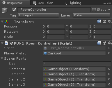 - Voeg een PUN2_RoomController-script toe aan het _RoomController-object