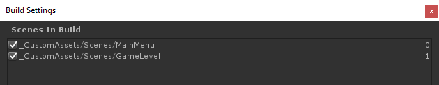 - Voeg zowel MainMenu als GameLevel toe aan de Build-instellingen.
