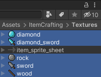 - Wijzig in SC_ItemCrafting de Itemgrootte in 5 en wijs elke sprite toe aan de Item Sprite-variabele.